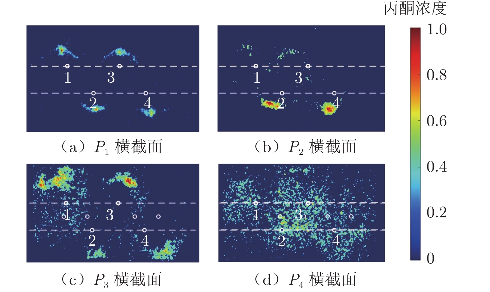 2 combustion environment. The acetone PLIF fluorescence images and the OH−PLIF fluorescence images which were in the multiple cross sections with various working conditions were obtained. The results showed that the acetone PLIF signals of the four kinds of struts in hot test environment were much weaker than cold test results. However, it was still EL1 strut which had best function on fuel/air mixing effect, and that was consistent with cold test results. Under the condition of H